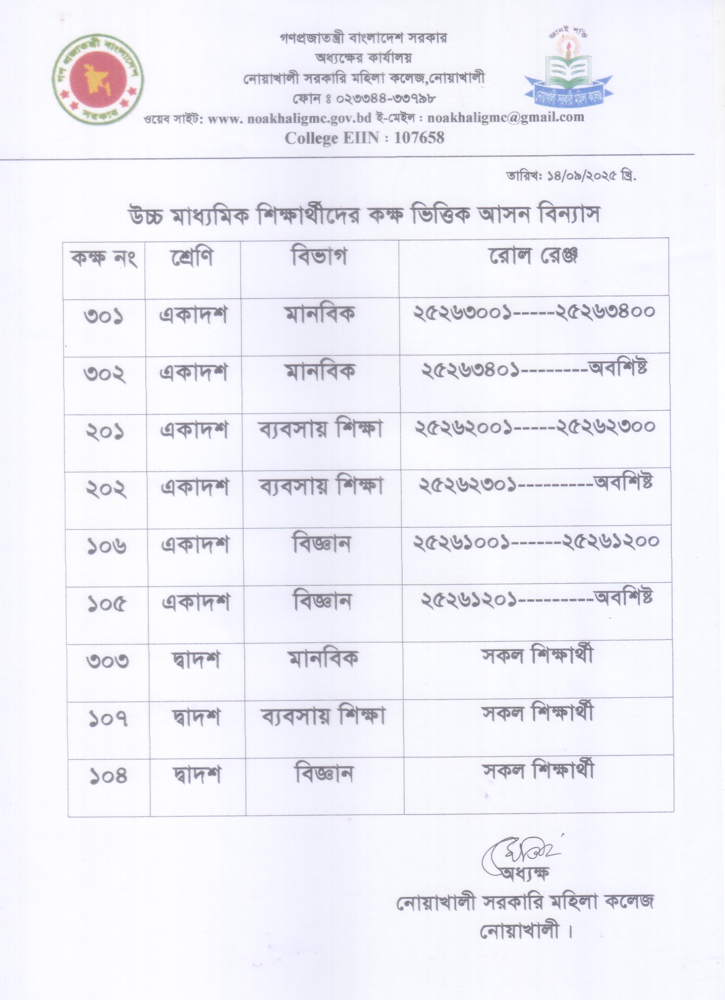 একাদশ ও দ্বাদশ শ্রেণির ক্লাস রুম সম্পর্কিত বিজ্ঞপ্তি