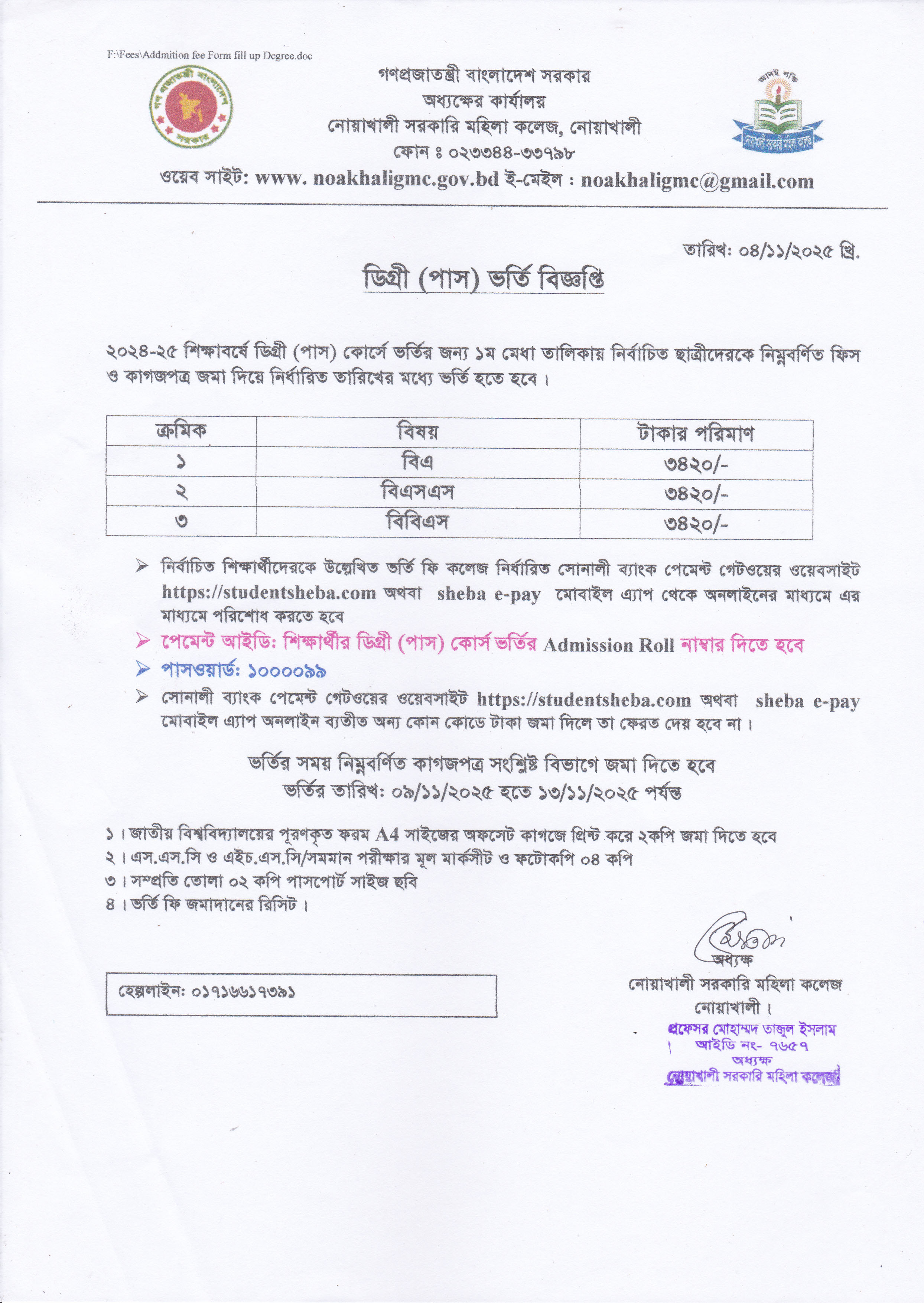 ডিগ্রী (পাস) কোর্স ১ম বর্ষ ভর্তি (সেশন ২০২৪-২৫) বিজ্ঞপ্তি NEW